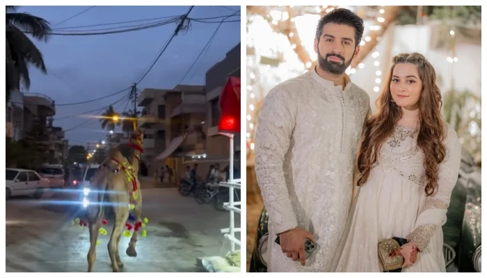 کراچی (کنزیومر واچ نیوز)اداکار منیب بٹ نے اس بار سنتِ ابراہیمی کی پیروی کرتے ہوئے قربانی کے لیے ایک اونٹ خریدا جو رسی توڑ کر بھاگ نکلا۔سوشل میڈیا پر حال ہی میں ایک ویڈیو وائرل ہورہی ہے جس میں ایک اونٹ کو رسی توڑ کر بھاگتے دیکھا جاسکتا ہے، وہ اونٹ اداکار منیب بٹ اور اداکارہ ایمن خان کا ہے۔وائرل ویڈیو میں دیکھا جاسکتا ہے کہ خوبصورتی سے سجا ایک اونٹ تیزی سے گلی سے نکل رہا ہے جب کہ لوگ خوف کے مارے دور بھاگتے نظر آئے۔اسی ویڈیو کو اداکارہ منال خان نے اپنی انسٹاگرام اسٹوری پر شیئر کرتے ہوئے بہن ایمن خان اور بہنوئی منیب بٹ کو ٹیگ کرکے لکھا کہ آپ کا اونٹ تو وائرل ہوگیا۔بعدازاں منیب بٹ نے اس واقعے کی تصدیق کرتے ہوئے بتایا کہ یہ واقعہ ایک دن قبل پیش آیا۔اداکار نے اپنی اسٹوری میں بتایا کہ سی سی ٹی وی فوٹیج سے پتا چلا کہ چند بچوں نے اونٹ کو پتھر مارے جس کے باعث وہ ڈر گیا اور رسی توڑ کر فرار ہوگیا۔اداکار نے والدین سے اپیل کی کہ وہ بچوں کو یہ سکھائیں کہ قربانی کے جانوروں سے حسنِ سلوک سے پیش آنا چاہیے۔منیب بٹ نے اپنے وی لاگ میں قربانی کے اونٹ کی خریداری، اسے گھر لانے کے مراحل اور اس سے جڑی دلچسپ یادوں کو بھی مداحوں کے ساتھ شیئر کیا ہے۔