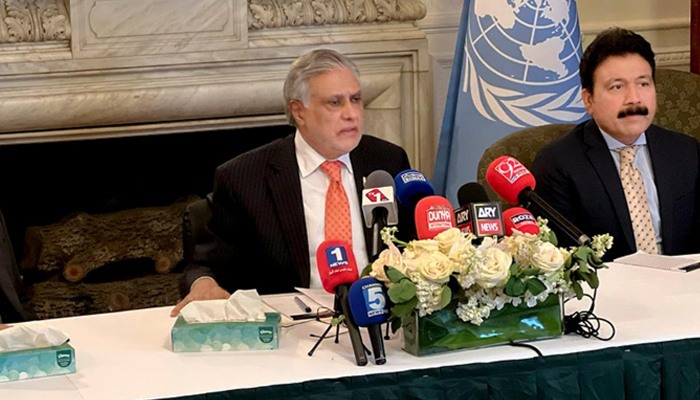 دو ریاستی حل سے متعلق کانفرنس میں شرکت کے بارے میں ایک سوال پر اسحاق ڈار نے کہا کہ انہوں نے یو این کانفرنس میں پاکستان کے جانب سےبھرپور بیان دیا ہے۔ پاکستان دو ریاستی حل کی حمایت کرتا ہے اور فلسطینی سر زمین پر اسرائیلی قبضہ فوری ختم ہونا چاہیے۔پاکستان کا اسرائیل کو تسلیم کرنے کا کوئی منصوبہ نہیں ہے۔مسئلہ کشمیر سے متعلق ایک سوال پر نائب وزیراعظم نے کہا کہ انہوں نے سلامتی کونسل کی صدارت کے دوران ہر موقع پر فلسطین کے ساتھ کشمیر کے مسئلے کو اجاگر کیا۔اسحاق ڈار نے باور کیا کہ بھارت کےساتھ ڈائیلاگ ہوگا تو جامع ڈائیلاگ ہوگا۔بھارت جب بھی کمپوزٹ ڈائیلاگ کرنا چاہے، پاکستان تیار ہے تاہم دوٹوک انداز میں کہا کہ بھارت سندھ طاس معاہدے کو یکطرفہ طورپرختم نہیں کرسکتا۔انہوں نے کہا کہ تین دریاؤں پر ہمارا حق ہے۔پانی کا رخ موڑ دیا گیا تو ہم قبول نہیں کریں گے۔ہم پانی کی ایک بوند بھی چھوڑنے کے لیے تیار نہیں۔ پانی کے معاملے پر ثالثی عدالت میں پاکستان کی پوزیشن بہتر ہے۔نائب وزیراعظم نے کہا کہ فیلڈ مارشل جنرل عاصم منیر کی قیادت میں پاک فوج امن کے لیے کوشاں ہے تاہم بھارت کی جانب سے متنازع بیانات کی وجہ سے پاکستان الرٹ ہے۔بانی پی ٹی آئی عمران خان سے متعلق ایک سوال پر نائب وزیراعظم نے کہا کہ جب آپ ہتھیار اٹھاتےہیں تو قانون اپنا راستہ بناتا ہے۔بانی پی ٹی آئی کے خلاف کیسز عدالتی معاملہ ہے۔