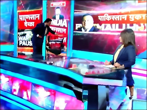 پاکستان کی سفارتی کامیابی پر بھارتی اینکر کی لائیو شو میں توڑ پھوڑ