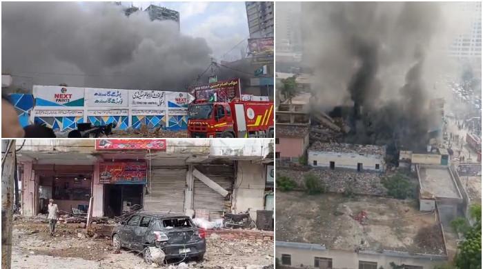 کراچی: ایم اے جناح روڈ پر پٹاخوں کے گودام میں دھماکے کے بعد آگ لگ گئی، 30افراد زخمی