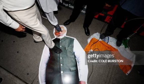 مظاہرے میں نریندر مودی کی تصویر پر جوتے مارے گئے