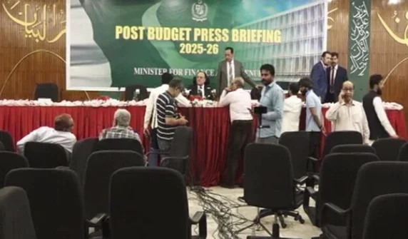 وزیر خزانہ کی پوسٹ بجٹ پریس کانفرنس، صحافیوں کا واک آؤٹ
