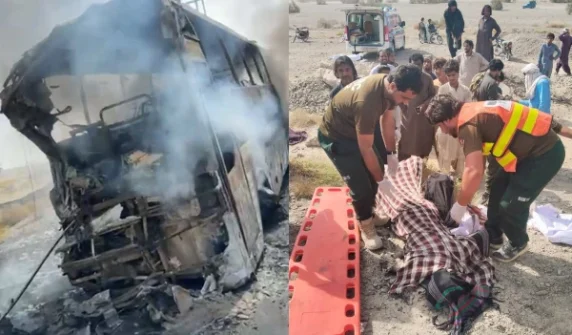 پنجگور میں مسافر بس اور گاڑی میں تصادم، 8 افراد جھلس کر جاں بحق